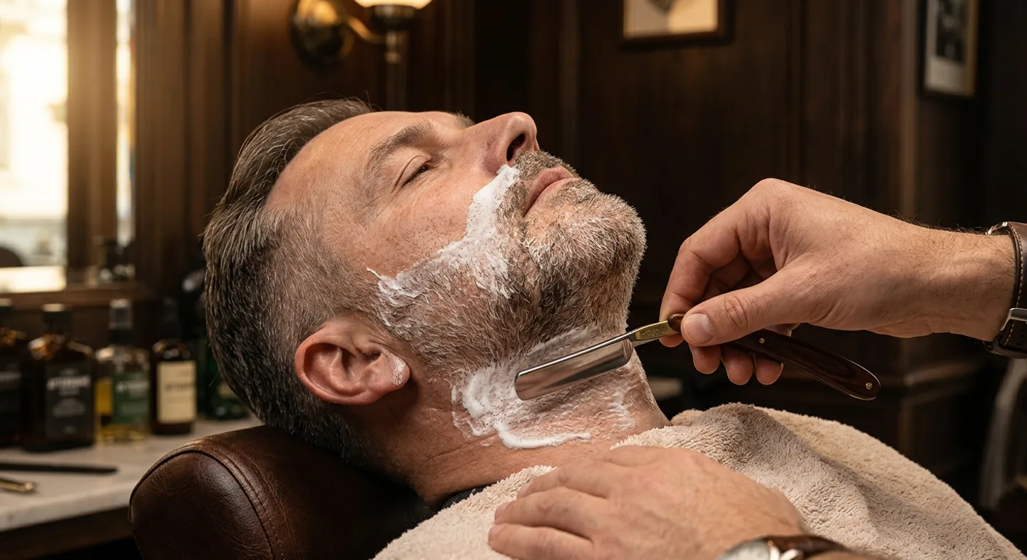 Classic grooming landing page with ritual-led service menu and WhatsApp-first reservation flow.